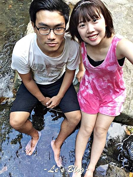 爬山實在太熱我們就走到小溪裡泡腳